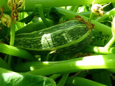 Diese Mischung in die Auflaufform über die Zucchini gießen und gleichmäßig verteilen.